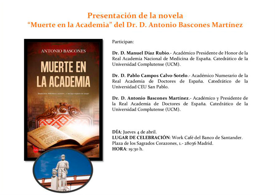 Antonio Bascones acaba de publicar la novela Muerte en la Academia (Editorial Almuzara) que se presentará el 4 de Abril de 2019.